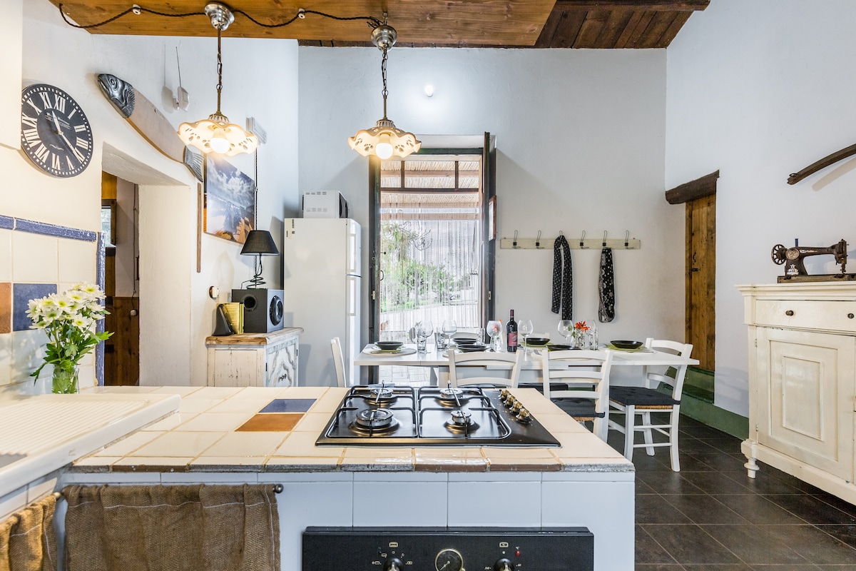 19088011C210609 Un gran jardín privado y una encantadora casa se encuentran en una zona encantadora y antigua. Un alojamiento para quedarse durante días, pensar, relajarse, cocinar y comer, tomar el sol, escribir y, finalmente, trabajar con un wifi muy rápido que también llega al jardín. La casa está construida a partir de una antigua cueva, detrás de la iglesia principal de Santa María La Nova. El gran jardín es la extensión natural de la casa. Hamaca, chimenea, mesas y espacios entre olivos y limoneros, escondidos de las rutas turísticas, perfectamente dentro del pueblo.