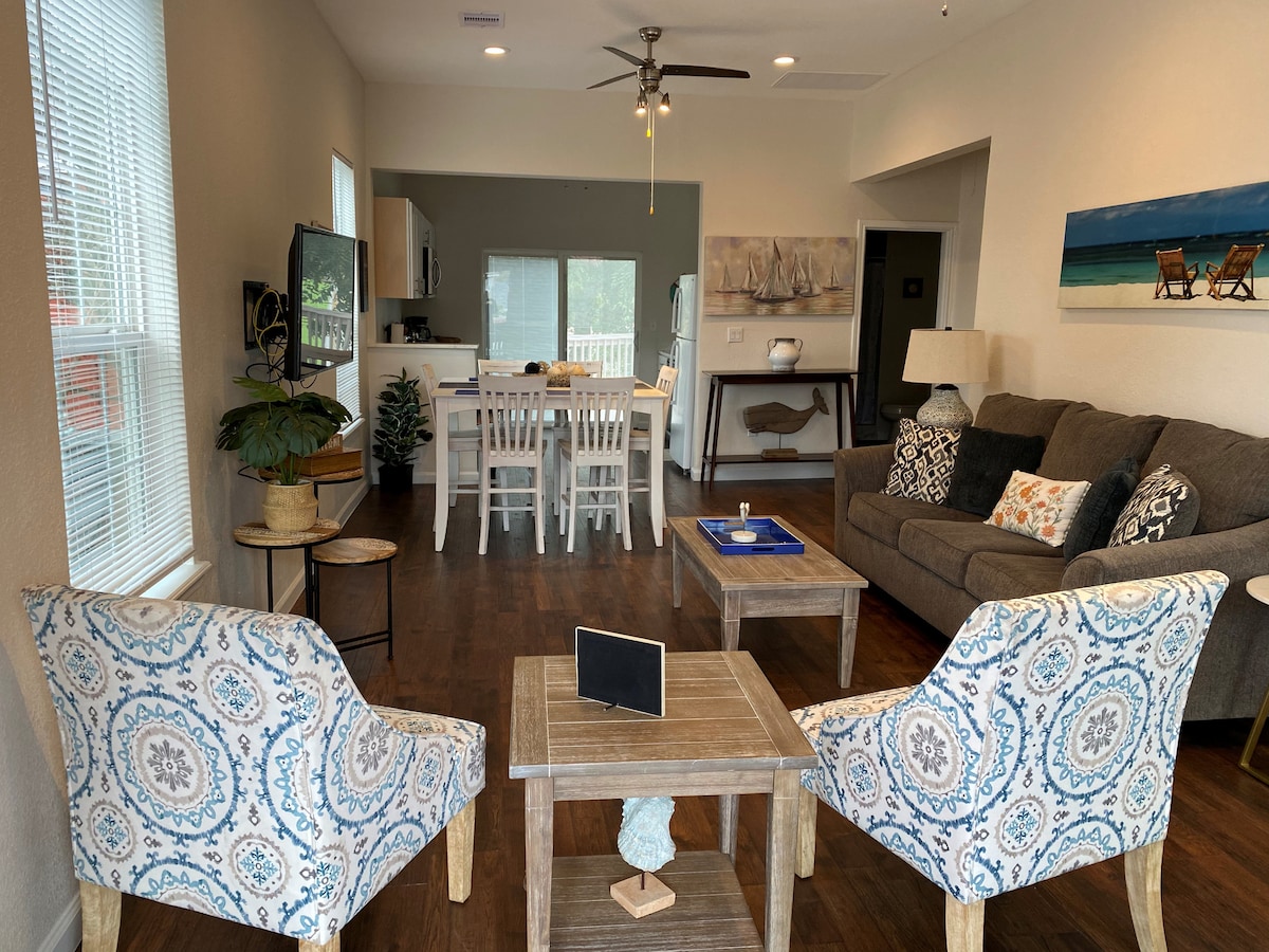 Si quieres escapar de la realidad y relajarte, ¡no digas más! Este es el lugar perfecto para una familia de 4 o una pareja que busca escaparse. Esta es una unidad de 1 dormitorio y 1 baño con electrodomésticos de acero inoxidable. Kemah Boardwalk está a menos de una milla de distancia, también está el centro comercial Baybrook que está cerca y tiene excelentes tiendas y restaurantes. Hay muchas actividades que hacer a poca distancia en coche, como Topgolf, Main Event, Star Cinema Grill, Dave and Busters y mucho más.