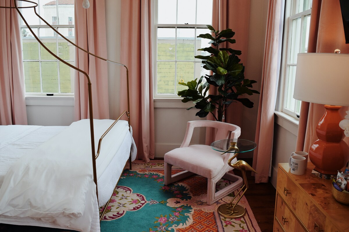 Stay in an upscale place that’s near everything you want to visit. Sugars Inn is just like being in NOLA or Charleston. The fabulous boutique hotel is centrally located in the heart of the historic downtown Galveston and above the amazing Sugar and Rye restaurant. Join us in your fresh off the press newly renovated room in the historic 1840's building. This is a self check in establishment with FREE OFF street parking Pet friendly to 1 one dog with pet fee.