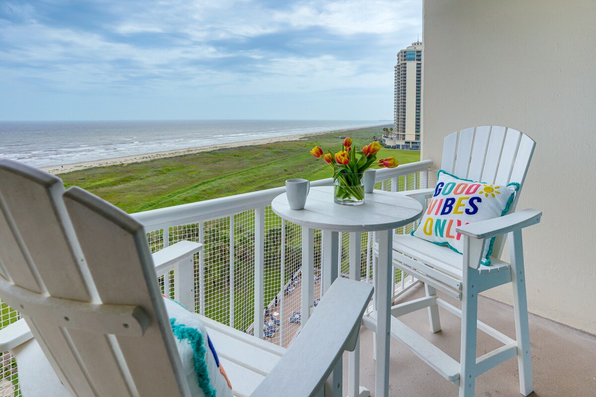 Este querido apartamento estudio en esquina frente a la playa entre Stewart Beach y East Beach tiene un gran balcón y amplias vistas al golfo. Está bien equipado para dos o para un retiro en solitario. ¡El resort ofrece piscina y pickleball! No hay calle que cruzar para llegar a la playa, sin embargo, el condominio está cerca del centro de Galveston y del malecón. Disfruta de los hermosos amaneceres y contemplar la luna, sigue los cruceros de ida y vuelta, echa un vistazo a la actividad en la playa, flota en la piscina climatizada o relájate y observa las olas.