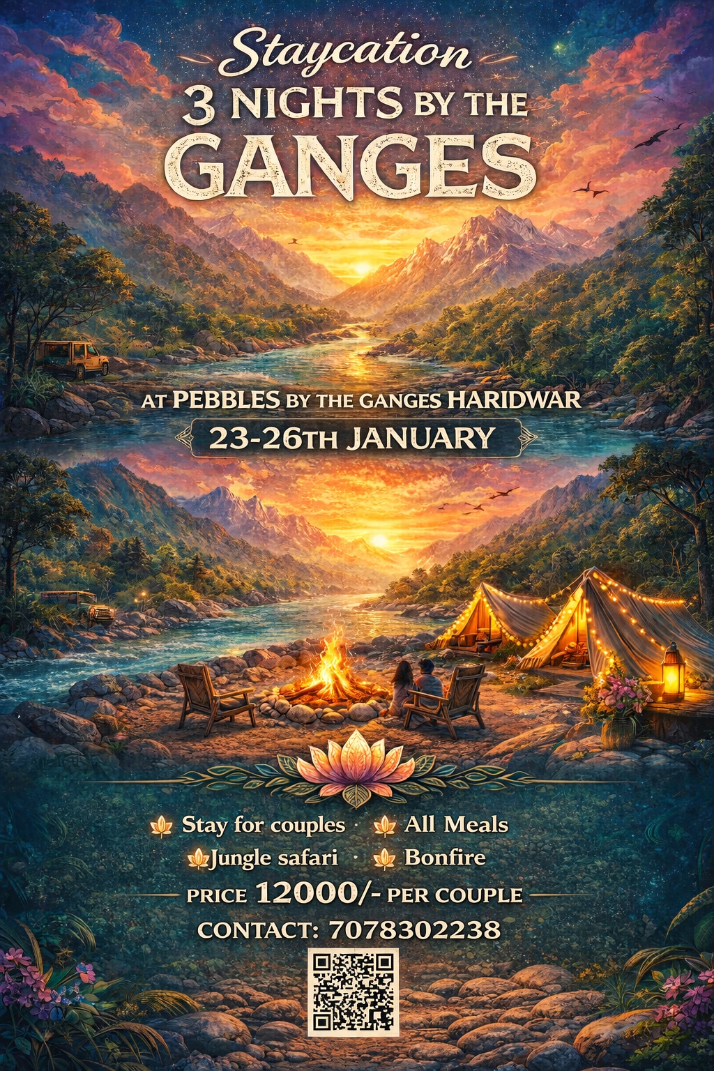 Nestled in the heart of the yogic city, our tranquil property offers a serene haven for families to unwind and rejuvenate. Start your day with yoga or meditative walks, indulge in holistic spa treatments, river rafting, bunjee jumping and other adventures. Book a scooter or a car/taxi at the comfort of your home and explore the 'yogic capital' of the world.