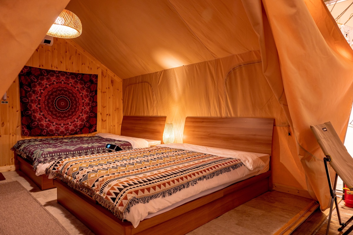 Hola, somos Onda, estamos investigando y proporcionando una variedad de áreas de relajación. Esperamos que todos los que se queden aquí tengan un tiempo cómodo y feliz. [Acerca del alojamiento] Es un campamento donde puedes sanar realmente tu cuerpo y tu mente para todos aquellos que están cansados del polvo y el estrés de la vida cotidiana. Situado en los jardines botánicos y el bosque justo al lado, puedes disfrutar del impresionante paisaje y el aire fresco. [Tipo de habitación] Tipo de habitación (doble 1) * Se proporciona ropa de cama para que coincida con el número de personas reservadas.