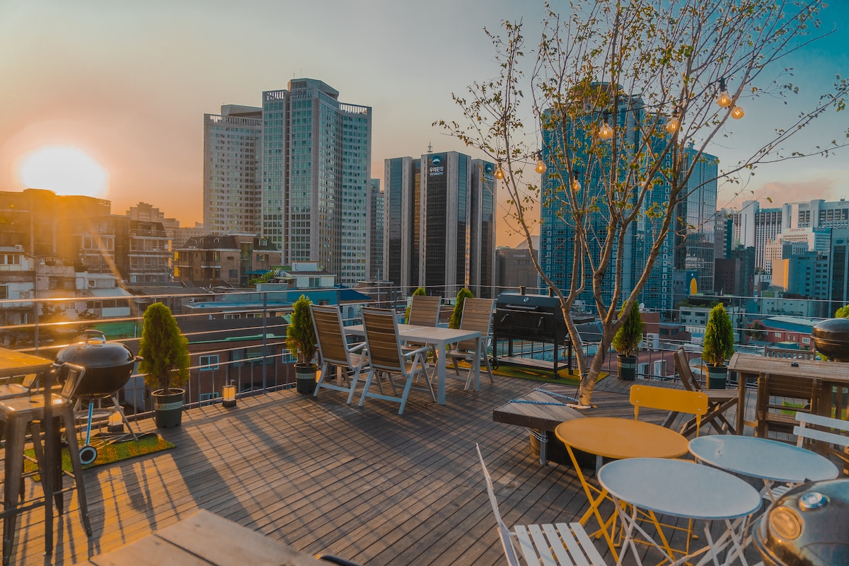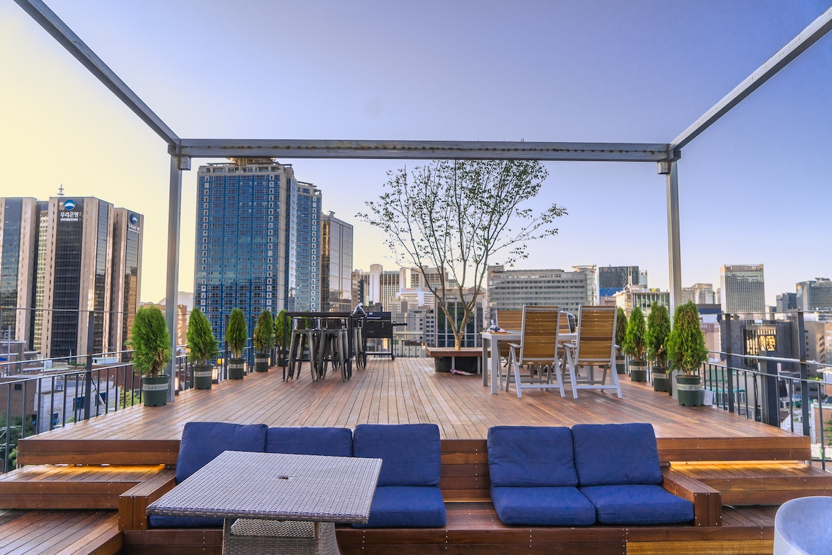 Doble piso, barbacoa en la azotea, 5 minutos de Myeondong,