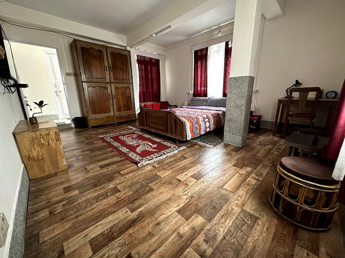 "Escápate a la serenidad en nuestro refugio de Chongay, a 7 km de la ciudad de Gangtok. Nuestros apartamentos tipo estudio ofrecen un refugio tranquilo en medio de una exuberante vegetación y un hermoso jardín. Disfruta de servicios modernos como un televisor inteligente de 50 pulgadas, Wi-Fi y aparcamiento gratuito. Relájate con un juego de bádminton o haz una breve caminata hasta el río cercano. Visita el reverenciado monasterio de Pema Choling Mane Lakhang, a solo 750 metros de distancia. Perfecto para familias y viajeros que buscan tranquilidad.