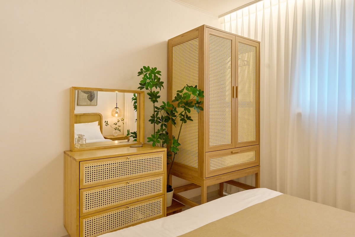 Neurujae: una estancia privada en un 4F al final de un tranquilo carril cerca del parque. Un refugio tranquilo en la ciudad, ideal para viajes en familia, visitas al hospital, conciertos o correr. 🏃 A 5 minutos del parque Ogeum, a 20 minutos del parque olímpico, amado por corredores y caminantes. 📍 5–7 minutos a pie de las estaciones de Ogeum/Bangi, 4 minutos del autobús 6300 al aeropuerto. 10 minutos en coche de Jamsil 🛏 2 dormitorios (Queen + Super Single cada uno, capacidad para 6 personas). Cama supletoria para 7-8 personas. 🚫 4ª planta, sin ascensor. Ponte en contacto con el anfitrión si llevas equipaje pesado.