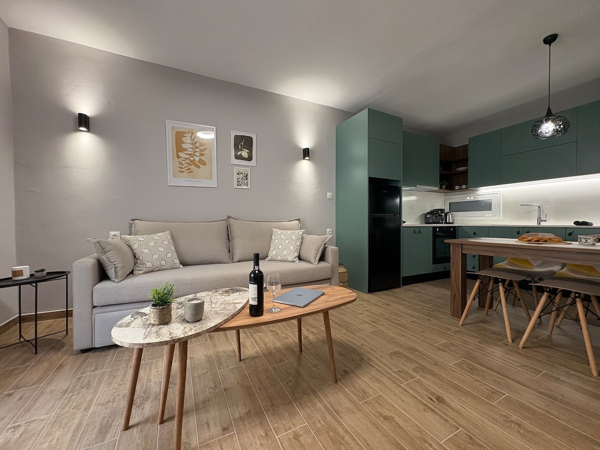 A modern newly renovated 35 square meters apartment located in the heart of Heraklion city with delightful balcony and private parking. The minimal refined design, the simplicity as well as the prime location ensure a unique experience of comfortable and high quality accommodation. All major attractions, archeological sites, restaurants, cafes and stores are within walking distance accesssed on foot.