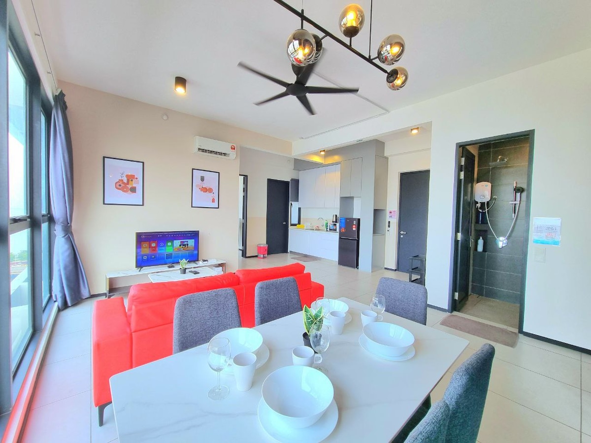 Urban Suites by Comfy Homestay SUPERANFITRIÓN de★ 5 estrellas ★ 3 dormitorios con 2 inodoros (vista a la ciudad) ★ 1 estacionamiento privado en el nivel 10 Wifi de alta velocidad de★ 100 Mbps ★ Totalmente climatizada. A ★ 2 minutos en auto del puente Penang. A ★ 2 minutos en auto de Karpal Singh Drive (Starbucks, Coffee Bean, McD, Family Mart, Karpal Singh Drive Seaview Promenade) A ★ 5 minutos en auto del centro comercial Queensbay ★ De 8 a 10 minutos en coche (menos de 5 km) de Chew Jetty, arte urbano y casco antiguo patrimonio de la UNESCO. A ★ 25 minutos en auto del aeropuerto.