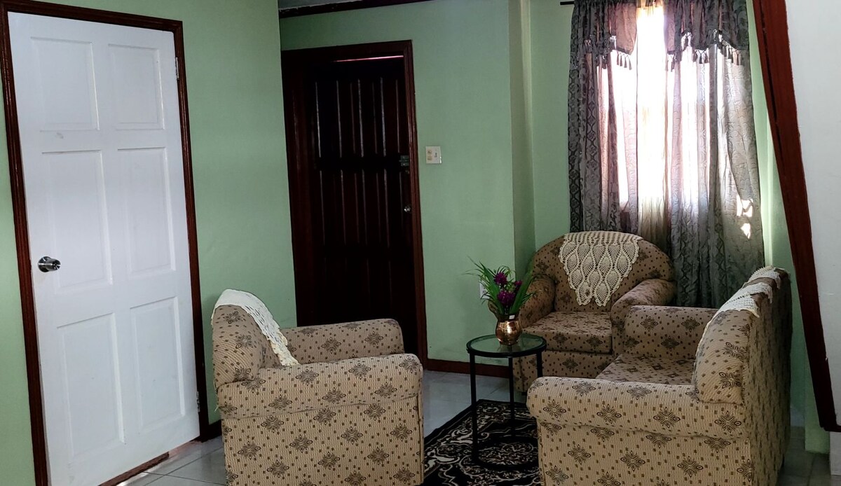 Apartamento de 2 dormitorios y 2 baños totalmente amueblado en la planta baja en Queenstown. Incluye wifi de alta velocidad, cámaras de seguridad, televisión inteligente/por cable, seguridad las 24 horas, los 7 días de la semana, generador, agua fría y caliente, aire acondicionado, lavadora y secadora. La propiedad está en excelentes condiciones con techos altos, habitaciones espaciosas y está ubicada en el centro; a 60 minutos del aeropuerto CJIA, a 10 minutos del centro de Georgetown y a 15 minutos de los centros comerciales. El supermercado y la panadería están a un paso de distancia. Se puede organizar el transporte desde el aeropuerto.