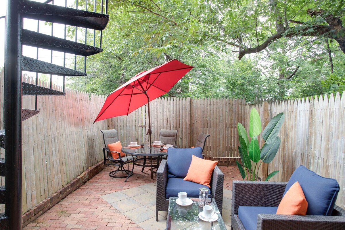 Just a few blocks from M Street and Wisconsin Ave., this modern, 1,000 square foot English basement features exclusive use of the entire lower level of a new Georgetown home and a private patio looking out onto a beautiful garden. Smart home features include voice commands for lighting, heating and cooling, a ceiling fan, door lock, and more. For working, there are two separate work spaces and fast, reliable Internet. For relaxing, we provide a full package of cable TV and streaming services.
