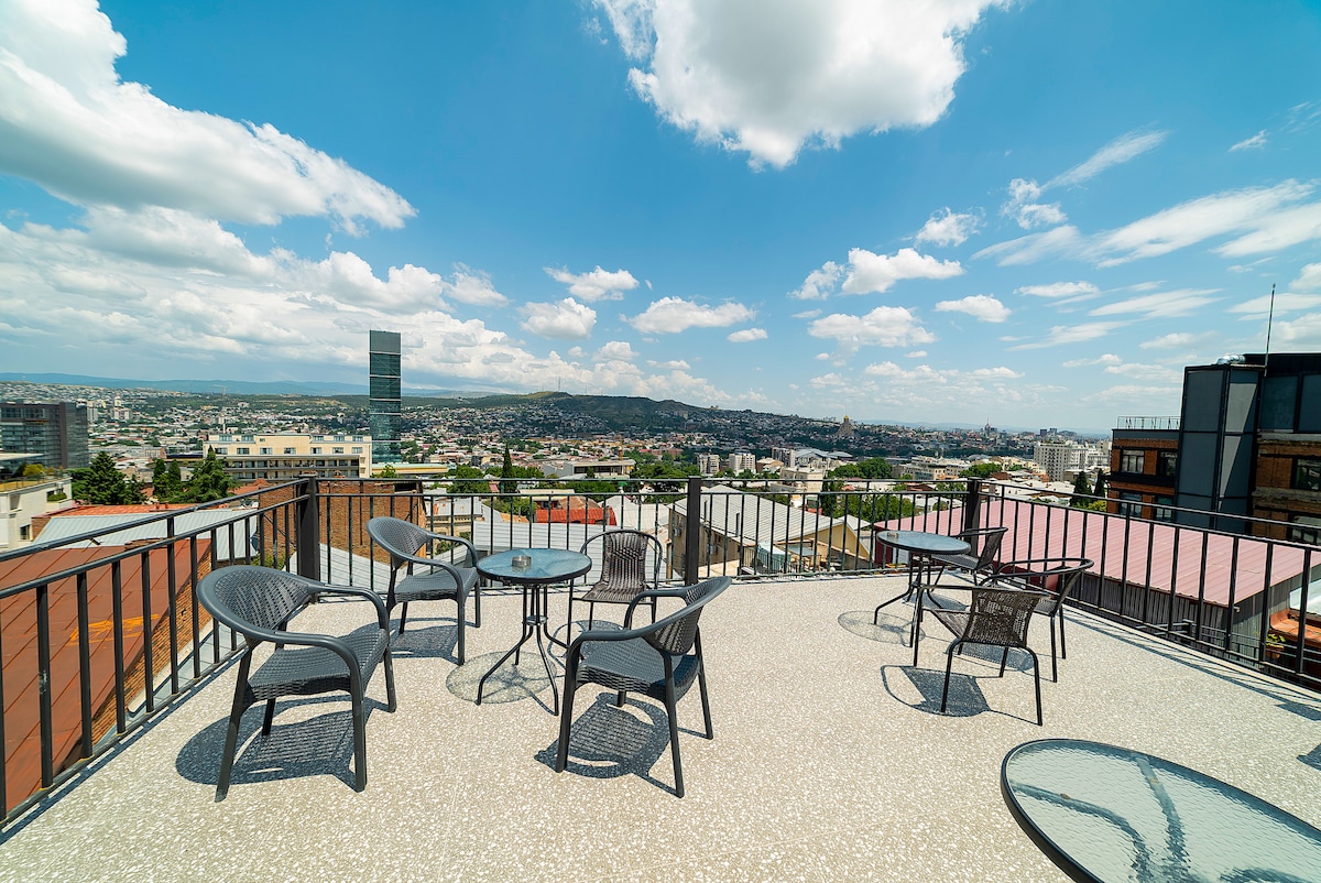 Welcome to our beautiful studio with balcony and Old City views, in Tbilisi's most Charming, Oldest and Central district "Mtatsminda" Steps away from the city’s Main Avenue “Rustaveli”. 2 min. walk from the Subway and Mtatsminda Cable Car, Lots of cafes and restaurants around, as well as markets, grocery stores and shopping malls, Walking distance to all major, must see places of the city, It’s a perfect base for exploring the city and here you can truly feel the vibrant spirit of surrounding.