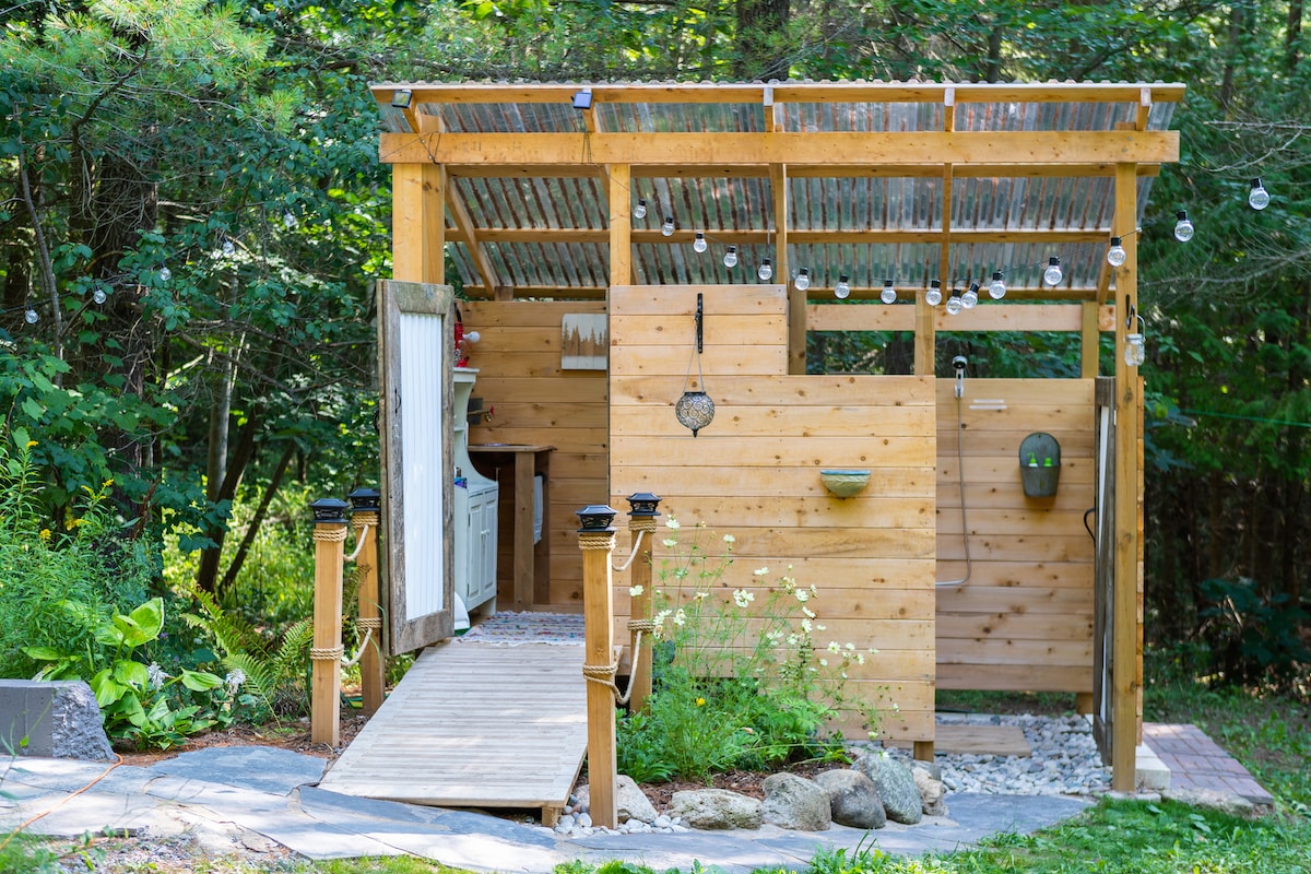 The Woodland Retreat es un tranquilo refugio ecológico Forest Oasis situado entre pinos, cenizas y arces. Disfruta de todas las comodidades que necesitas en un entorno creativo al aire libre. Nuestra nueva cúpula geodésica para observar las estrellas cuenta con todo lo que necesitas para una estancia cómoda y memorable. Disfruta de un inodoro de compostaje de lujo, una ducha de agua caliente bajo las estrellas y una cocina al aire libre. Estamos ubicados en el corazón de la escarpa del Niágara. Disfruta de cascadas, rutas de senderismo, ríos y playas. Todo a 5 minutos de la ciudad de Meaford.
