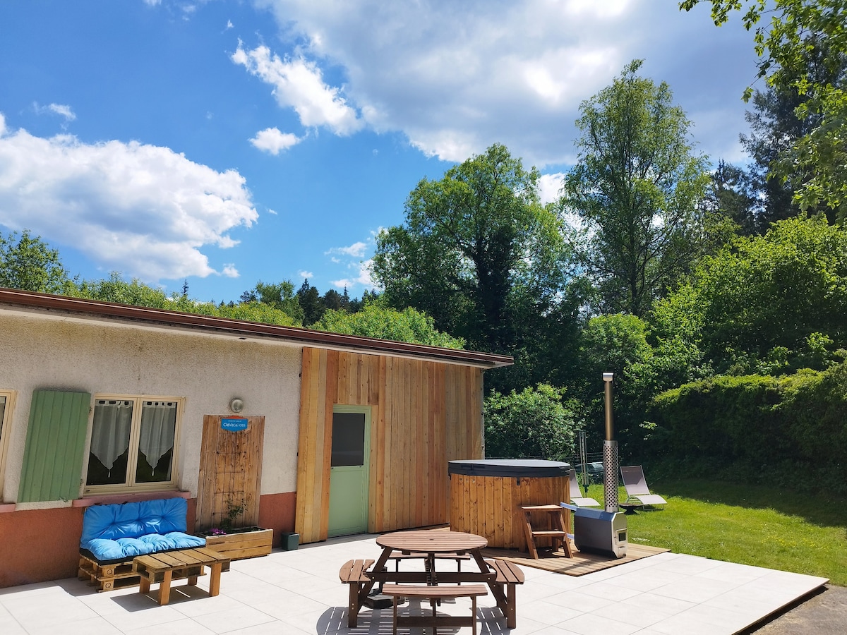 Entorno excepcional para esta casa rural insólita con todas las comodidades y bañera de hidromasaje privada Reconstruido con un puro espíritu de montaña Este chalé ofrece un cambio de aires a sus ocupantes ☺ En plena naturaleza y no muy lejos del lago es un lugar tranquilo y apacible en Gérardmer El refugio encaramado del salto de la bourrique con vistas a las gargantas del Phény con sus terrazas panorámicas ►Disfrute de un SPA al aire libre rodeado de abetos y píceas ►Terreno de 5000 m² vallado con aparcamiento privado