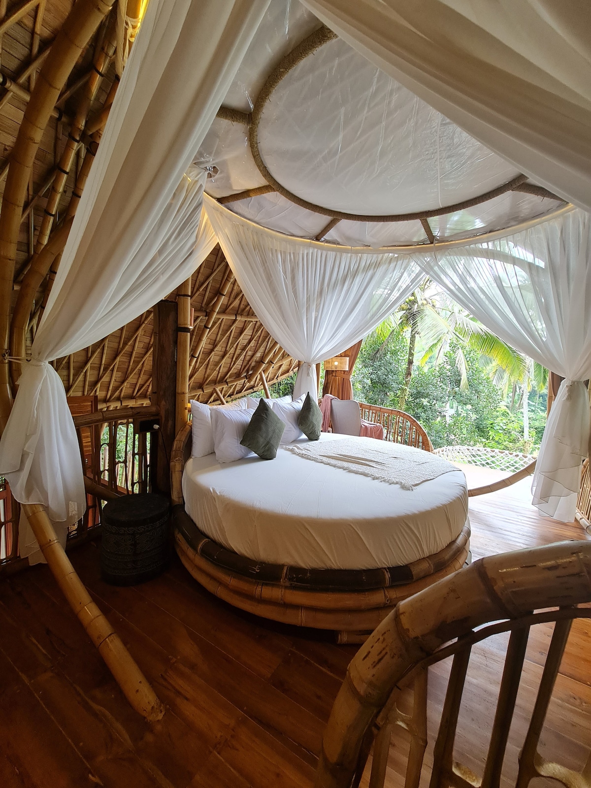 Disfruta del hermoso ambiente en medio de la selva en un pueblo tradicional llamado Tampaksiring, que es uno de los lugares más pintorescos de Bali. Elegimos construir una encantadora propiedad de bambú de alta calidad que dará a nuestros huéspedes la oportunidad de experimentar unas vacaciones con un entorno maravilloso de naturaleza y al mismo tiempo lujo y comodidad.