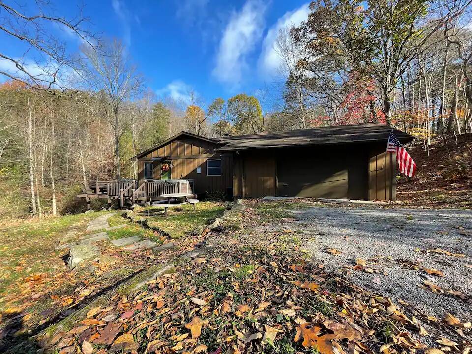 Desbloquea tu propio cuento de hadas en nuestra casa de campo aislada para parejas. Esta pequeña casa mágica es el lugar perfecto para una escapada romántica o para acurrucarse con una taza de café y un libro. Relájate en el porche cubierto mientras los pájaros cantan y las mariposas pasan. También hay una habitación con literas adicional para tus pequeños. - A 15 minutos de Old Man's Cave y del centro de Logan. - Jacuzzi privado, chimenea al aire libre y patio. - Leña en el sitio. - Cocina completa. - Marco de TV - Rincón de ventana. -Toallas para baño y jacuzzi.