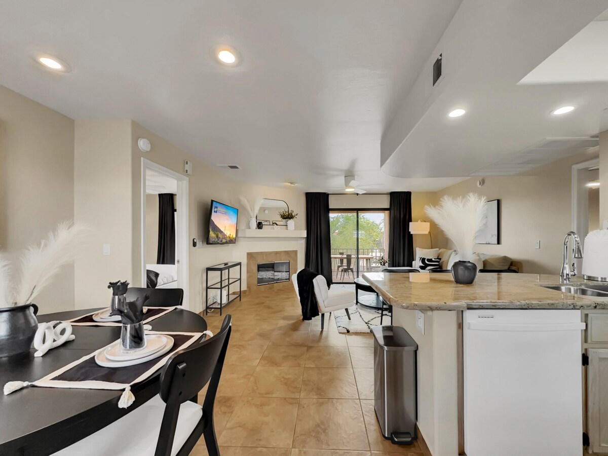 The Hill's Bungalow, una casita maravillosamente encantadora con entrada privada independiente y aparcamiento. Sal por la mañana, contempla el amanecer y siéntate en el porche trasero privado para ver el atardecer. Acabados personalizados y grandes ventanales que dan a una cocina gourmet/gran sala común, medio baño, TV de 50 pulgadas y wifi de alta velocidad. Una cama tamaño king con un lujoso baño completo hace que relajarse sea fácil. A poca distancia de rutas de senderismo, a 2 minutos en coche del centro de FH, a 10 minutos de Scottsdale o a 35 minutos de Sky Harbor.