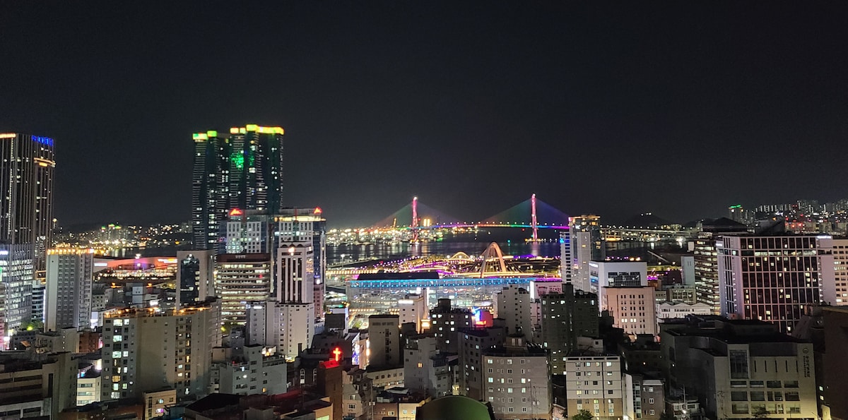 Yeongdo Are 2 habitaciones Nampo-dong. Suburbio de Jagalchi/Descuento por estancias consecutivas/Grupo de 7 personas/PC/Consola de juegos/Terraza en el cielo/Vista al puente del puerto norte