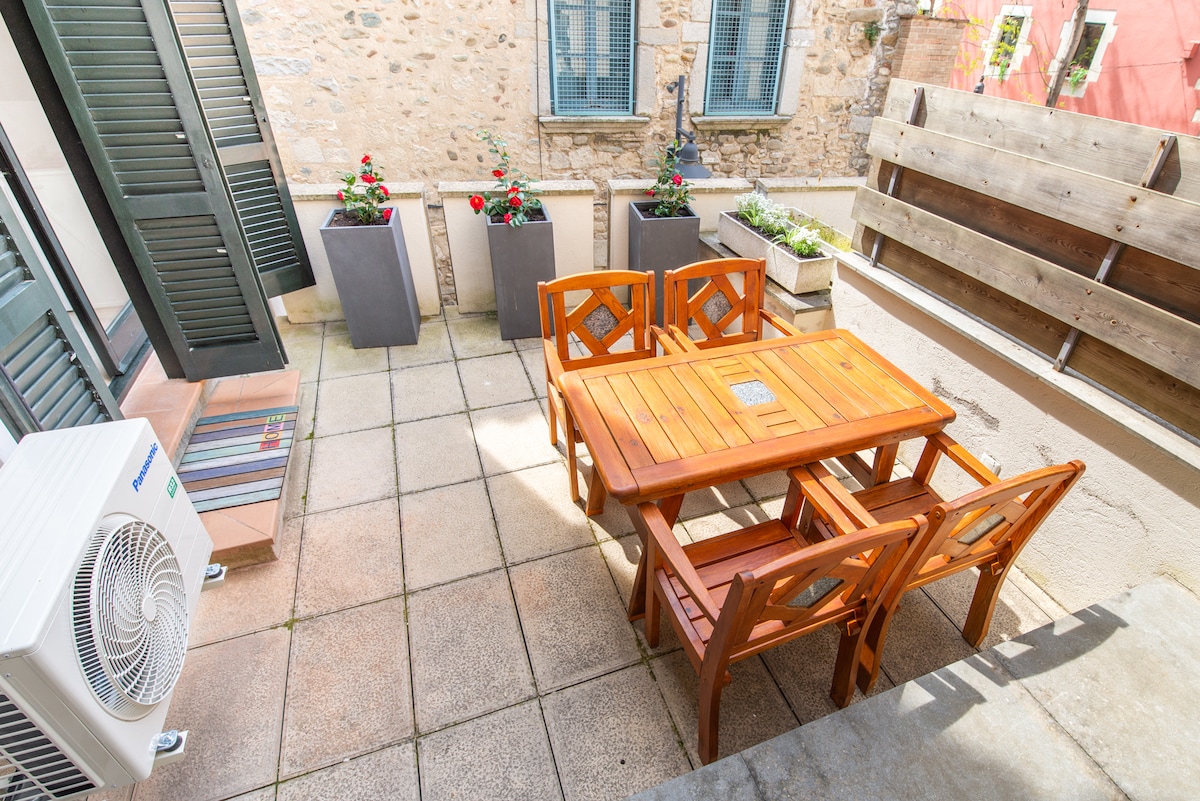 ALBADA BLAU: ¡Descubre el corazón del Barri Vell! Tu apartamento en planta baja con un encantador patio donde disfrutar una copa junto a la fuente al aire libre. Ubicación inmejorable junto al río y los monumentos. 2 baños completos para tu comodidad. La zona de descanso te espera con cama XXL (180x200) y chimenea eléctrica. En el salón, un confortable sofá cama (160x190). Ideal para ciclistas: espacio para 4 bicicletas. ¡Tu refugio perfecto para explorar Girona con confort y privacidad!