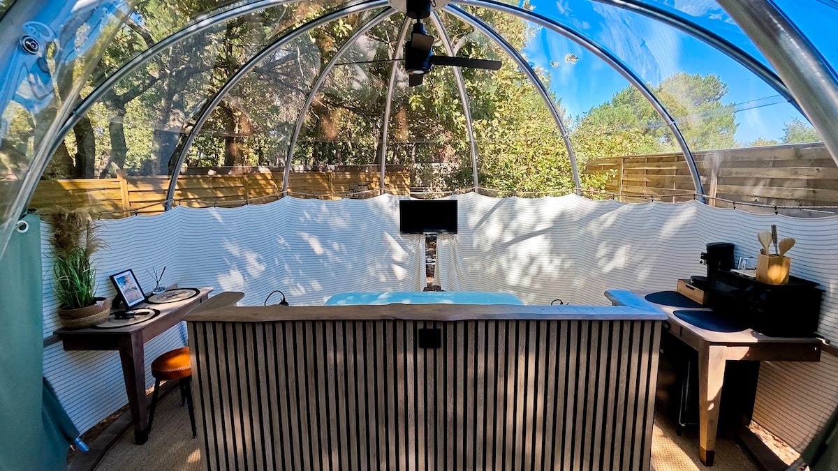 Ubicada en la entrada del bosque, nuestra burbuja ecológica te sumerge directamente en el corazón de la naturaleza, gracias a su lienzo cristalino. Por la mañana temprano, disfrute de un desayuno gourmet con el canto de los pájaros. Para su comodidad, tiene una pequeña cabaña con baño privado al pie de la burbuja. Durante su estancia tendrá acceso a nuestro baño natural. Ideal para un paréntesis de naturaleza a 50 minutos de Burdeos