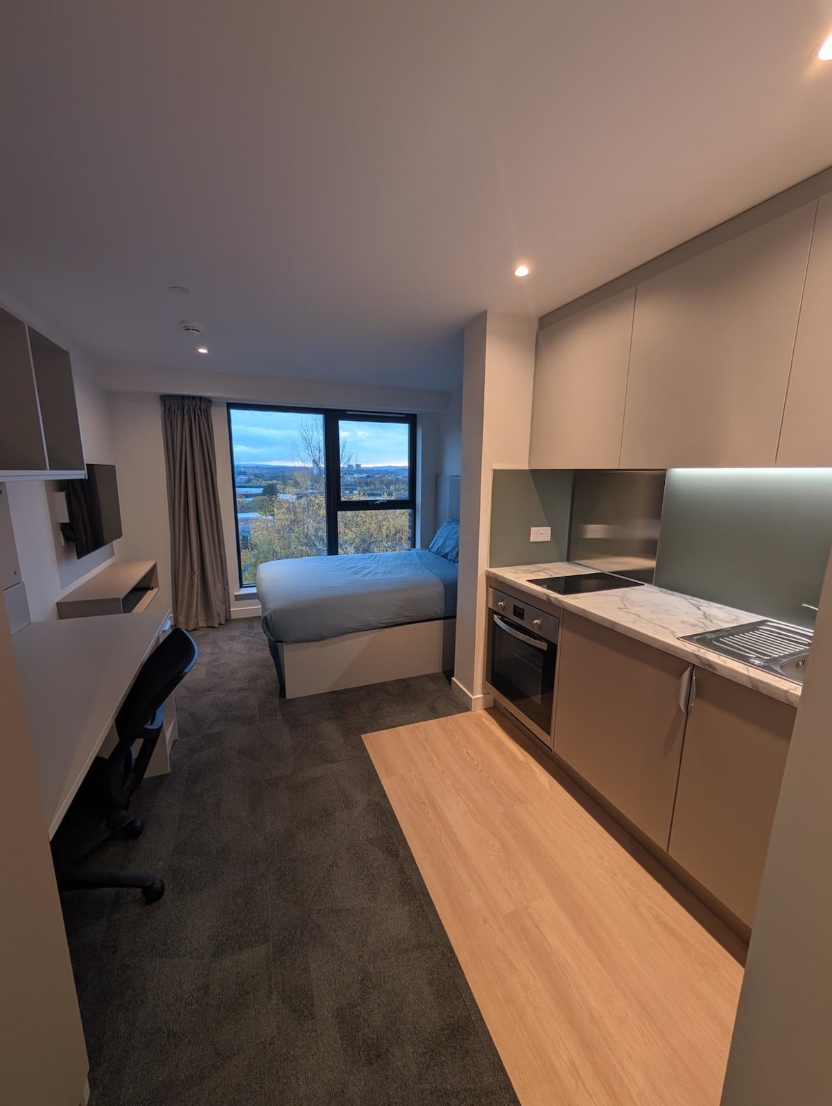 🌟 Experimenta lo último en vida estudiantil con nuestros modernos estudios, ubicados en el vibrante corazón de Glasgow. Nuestros estudios cuidadosamente diseñados ofrecen todo lo que necesitas para una estancia cómoda y productiva, con una acogedora cama doble pequeña, una cocina independiente y un baño privado. Cada estudio también incluye un escritorio dedicado para tus necesidades de estudio, lo que garantiza que tengas el espacio perfecto para concentrarte y sobresalir.