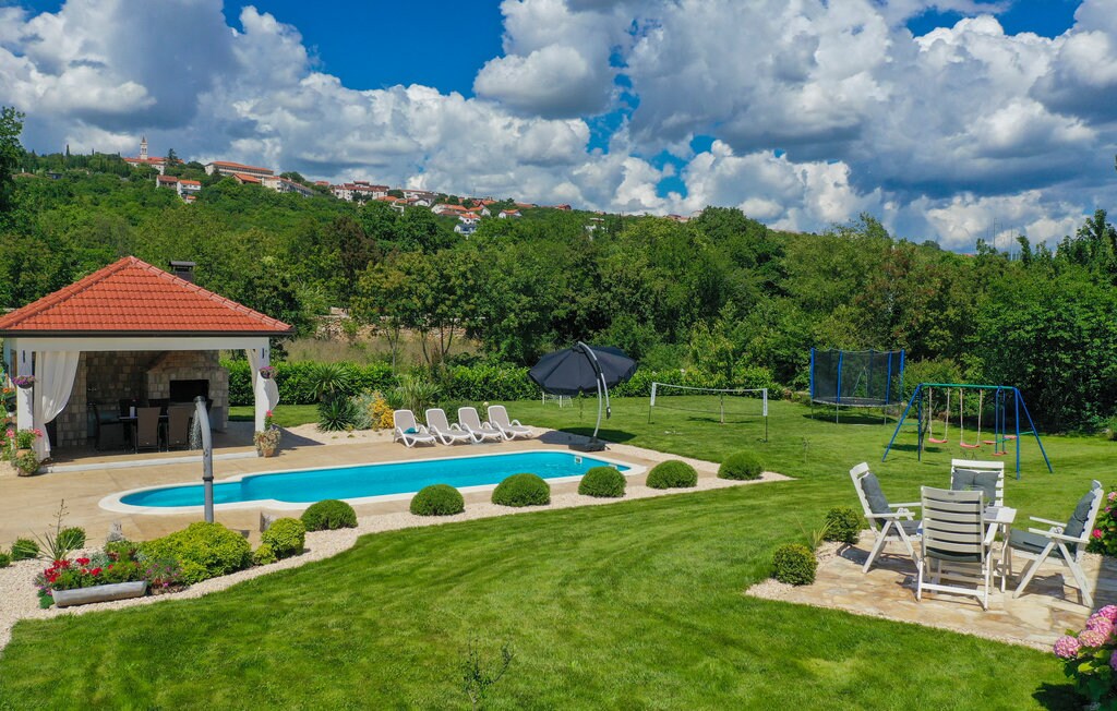 Una espaciosa casa familiar junto a la piscina con vistas al paisaje ondulado. Se encuentra en Glavina Donja, no muy lejos de Imotski. A solo media hora de la playa. Es espacioso e ideal para varias familias o grupos de amigos. Diviértete en la sala de actividades jugando dardos o tenis de mesa o juega al billar, no te aburrirás aquí. Disfruta de las noches de verano en la terraza con barbacoa y refréscate en la piscina detrás de la casa,mientras los niños se divierten en el parque infantil.
