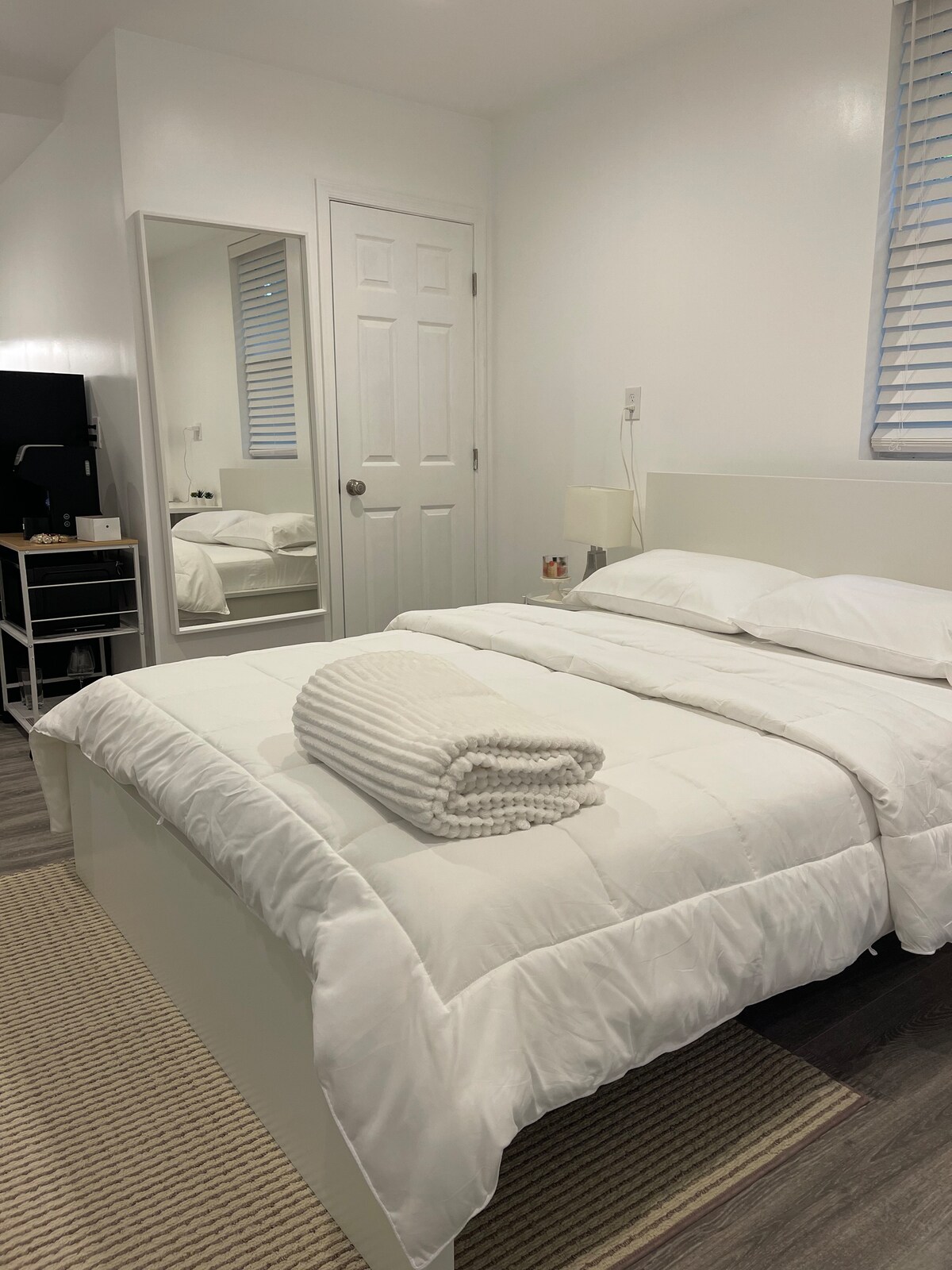 Unwind in this tranquil, stylish in-law suite just minutes from BWI. Located on the lower level of a modern townhouse, it features a private entrance, inviting dining area, spacious bathroom, and a cozy bedroom with a brand-new queen bed and HD TV. One well-lit parking spaces add convenience. The kitchenette includes a mini fridge, air fryer, microwave, coffee maker, and essentials for a relaxing, comfortable stay, with easy access to shops, dining, and major highways.