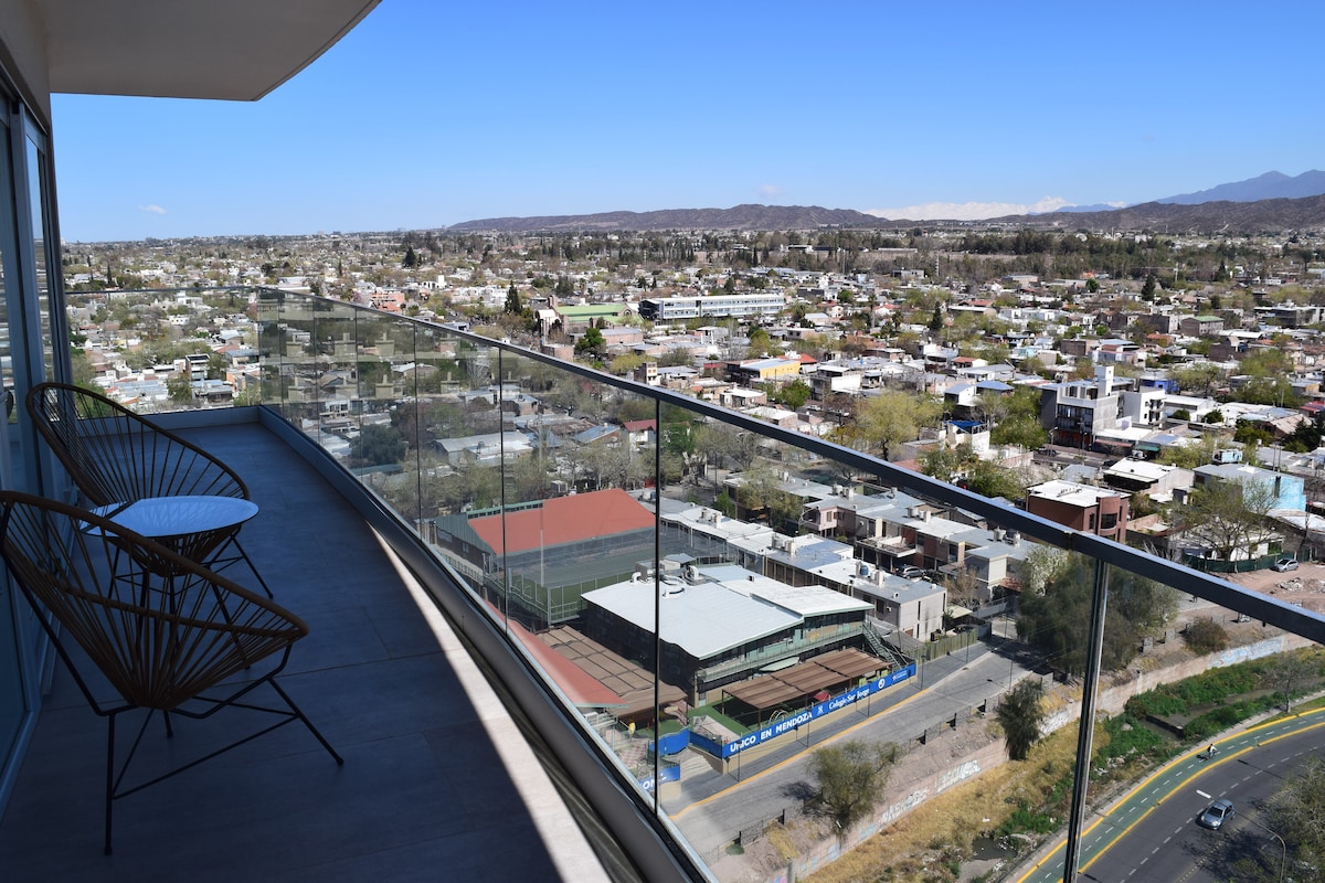 Hermoso departamento en el edificio más lindo y alto de Mendoza. Con vistas panorámicas a la ciudad de Mendoza y a la montaña. Cuenta con terraza Ubicación: - En el mismo complejo de un mercado gastronómico (cuenta con supermercado, cafetería, restaurantes) - La mejor ubicación en la Ciudad de Mendoza - Zona segura y linda para pasear - El edificio cuenta con seguridad 24hs - Atracciones turísticas cerca: Parque general San Martín, Calle Aristides Villanueva (zona de bares y restaurantes)