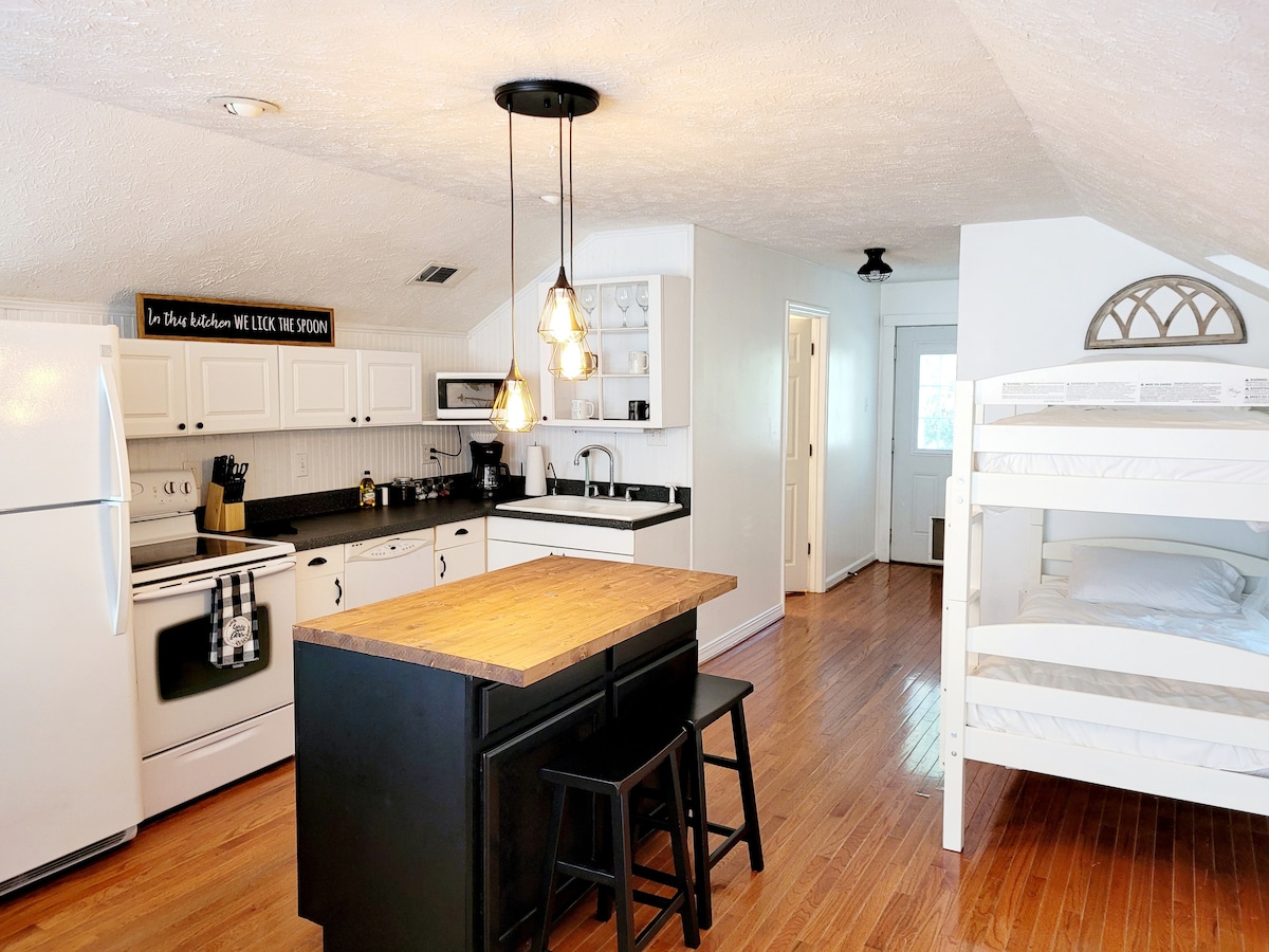 Bellamente situado en la granja McDaniel Pine en Wade, Carolina del Norte, te sentirás como en casa en la cabaña Bluff. Una configuración de estudio con una cama tamaño queen y 2 sillas que se convierten en cómodas camas individuales. También hay un colchón de aire disponible. Cómoda sala de estar con TV de pantalla plana grande y espacio de trabajo de escritorio dedicado. Baño privado, ducha a ras de suelo y una pequeña zona de cocina con placa eléctrica, ollas, sartenes, cafetera, microondas y nevera. ¡Bonito patio exterior con chimenea y acres para pasear!
