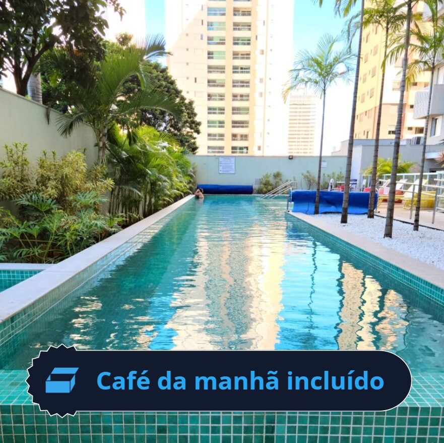 Studio novo, moderno e seguro no Setor Bueno, o bairro mais valorizado de Goiânia. Localizado no Ed. Tai Residências, com portaria 24h, garagem privativa e acesso por reconhecimento facial. Próximo ao Parque Vaca Brava, Goiânia Shopping, IPOG e CBCO. Conta com Wi-Fi 5G 700Mb, ar-condicionado, smart TV 50", terraço com sol da manhã, academia e piscinas panorâmicas no 24 andar. Ao lado da Panificadora Padoca e de ótimos restaurantes, bares e cafés. Praticidade e estilo em cada detalhe!
