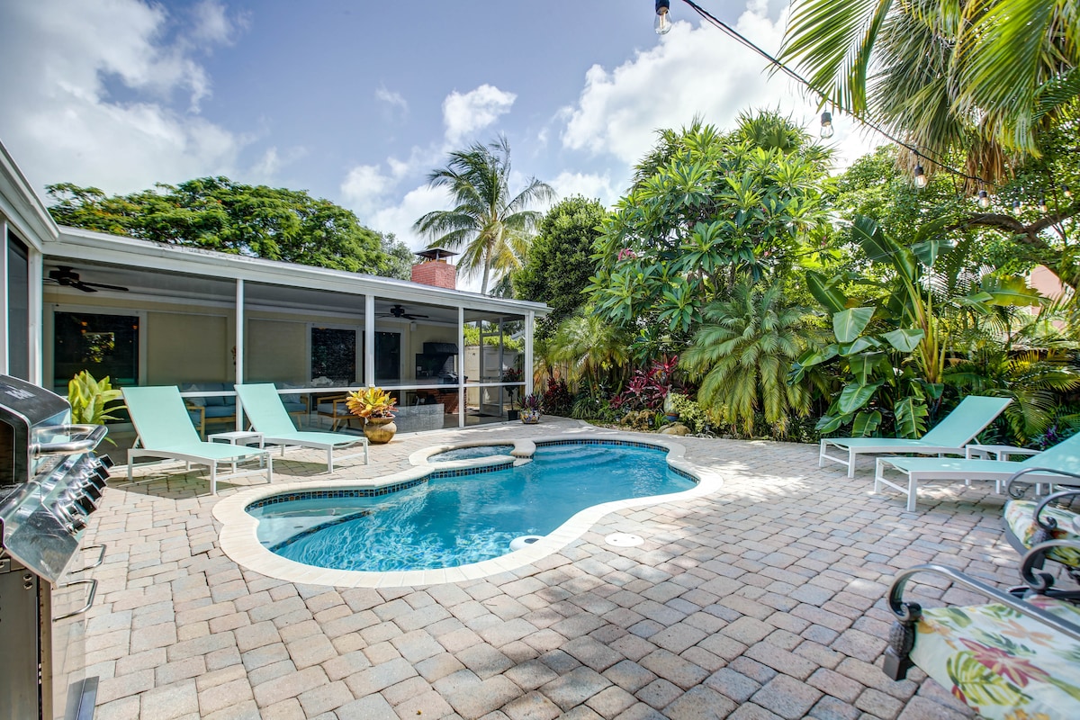 Casa con piscina en Florida en un canal en el cautivador Central Corals/Oakland Park. A minutos de Wilton Manors y las playas de Lauderdale. Disfruta de espacios abiertos llenos de luz, dormitorios generosos y una amplia terraza con vistas al agua. 3 camas/2 baños, cada habitación está ricamente decorada con ropa de cama de lujo, tocador y televisores. El patio trasero privado, la gran piscina climatizada, las tumbonas, el comedor al aire libre y los asientos del salón son tuyos para que los disfrutes. Completa con barbacoa y todos los servicios de piscina. Revisa las normas de la casa antes de reservar.