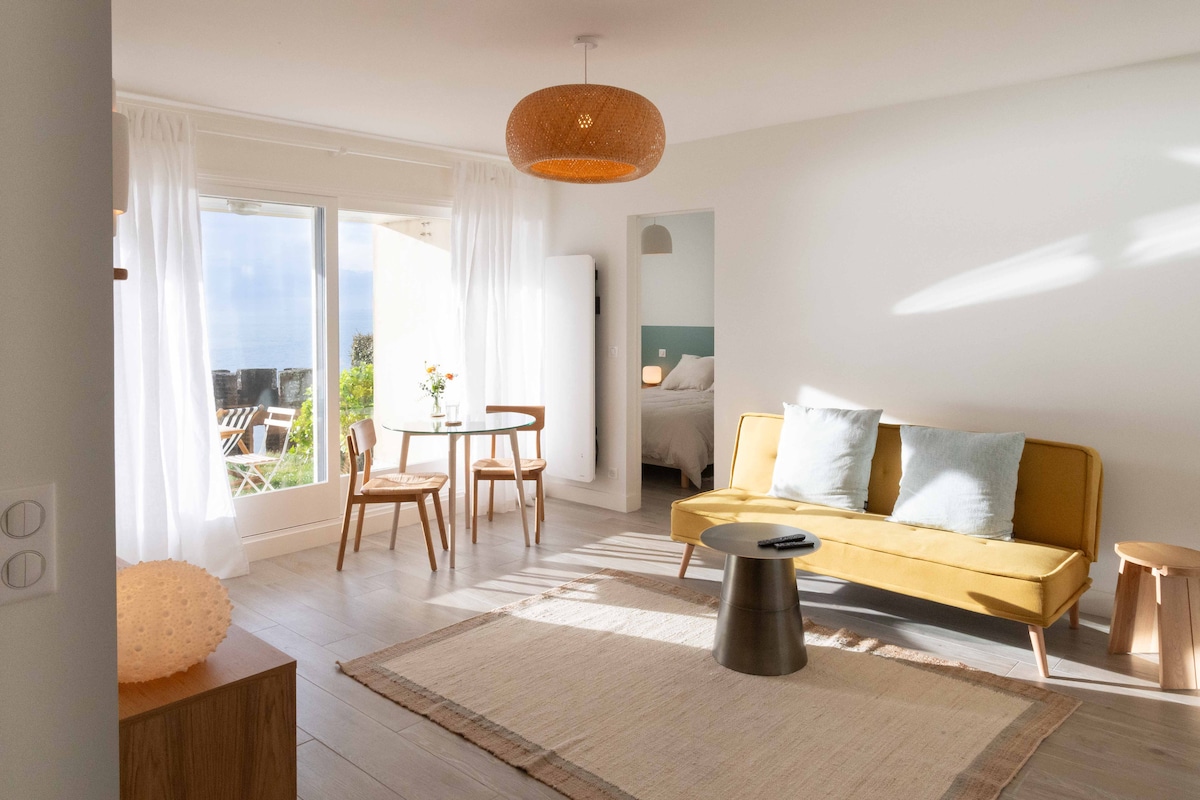 Les Câlins d'Honfleur nació de una historia de amor con la ciudad de Honfleur, su ambiente, sus calles estrechas y su antigua cuenca. Imaginé un lugar acogedor, en el corazón del distrito histórico, a 50 metros de la iglesia de Santa Catalina, fácil de vivir, tranquilo y cómodo. El apartamento de 41 M² de Pierre te ofrece toda la comodidad, un gran dormitorio separado con su cama tamaño queen, una gran sala de estar/ comedor con cocina totalmente equipada, baño con ducha y aseo separado.