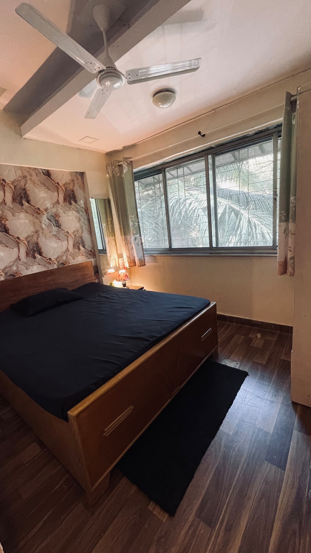 Experience comfort at Marita Apartment an executive 1-BHK on the ground floor near Carter Road. Steps from the ocean, it features a private garden patio, car/bike parking, queen bed, sofa bed, Smart TV, Wi-Fi, and a full kitchen. Located in a quiet, secure area near Rizvi College, it offers great value with easy access to city life. Just a short walk to Rizvi College, beachside strolls, cafes, and shopping. Ideal for Work or leisure with all modern comforts included.