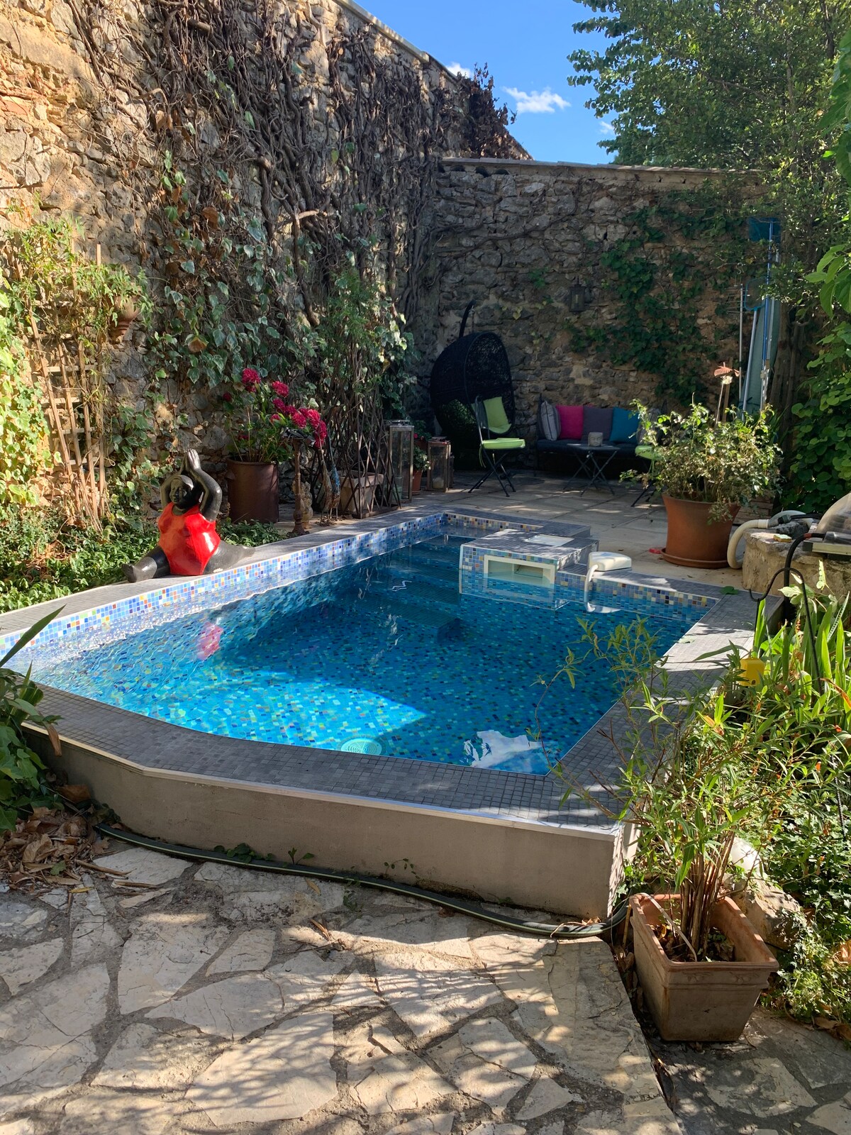 ¿Quieres una escapada romántica? ¿un lugar insólito? Bienvenido a nuestra Masía del siglo XVIII totalmente renovada para ofrecerle una estancia cerca de la naturaleza. Nuestro apartamento creado en la frescura de bóvedas de piedra le hará vivir una estadía original. Desde su terraza sombreada disfrutará de la vista de las plantaciones de olivos y robles de trufa. Y también será recibido por Lulu & Griotte nuestros dos perros que acompañan a Nadine en su cosecha de trufas.