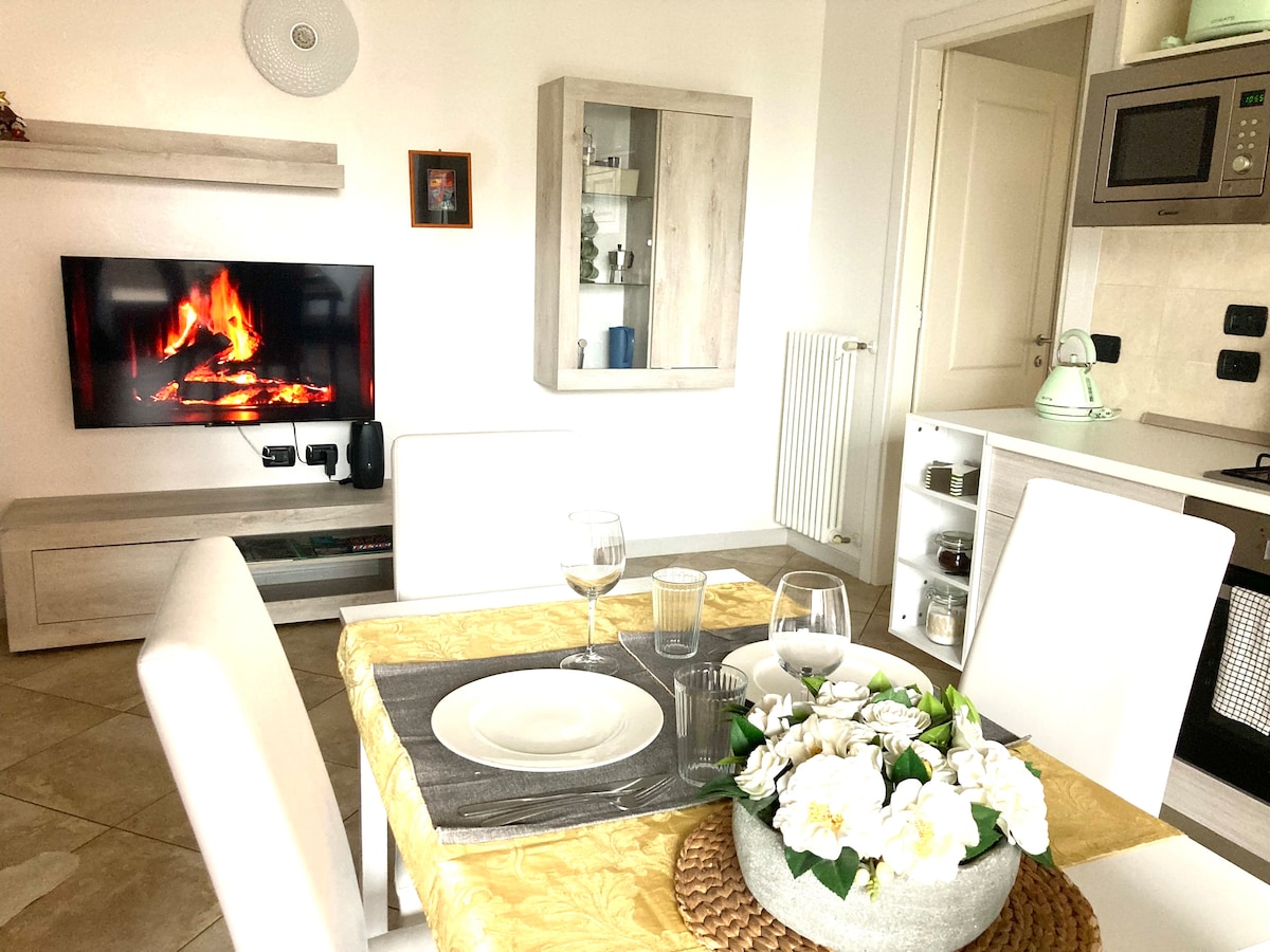 Located on the border with Bergamo in a quiet area but in a strategic position to visit the center and all the activities in the area (Fair, Hospital). Convenient bus connection. Cradle yourself in the Jacuzzi giving yourself a moment of authentic relaxation, surrounded by a house completely decorated with wooden beams and doussiè parquet that create a warm atmosphere. Whatever the reason for your trip, work or tourism, the apartment has everything you need to welcome and pamper you