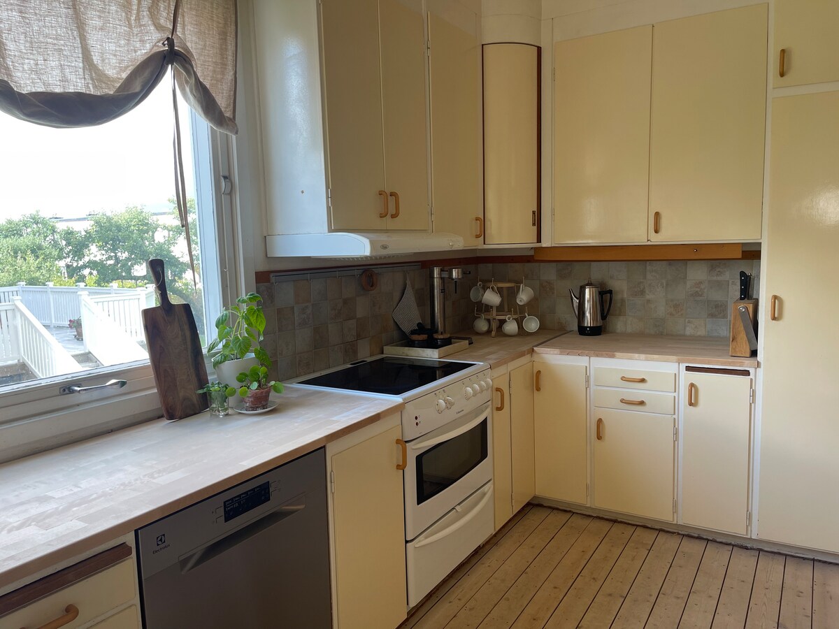 Lovely 4-room-apartment in 2-familyhouse with seperate entrance and free parking. The apartment is on the second and third floor. The neigbourhood is safe, green and idyllic close to Mariaplan/Slottsskogen/Central Gothenburg. The house is from 1923 and got lots of contempary details like wooden floors etc. Please note that there is a scaffolding on the gable of the house (exterior) since this side willl be repainted during april/may. No disturbing noise, not affect parking lot or entrance.
