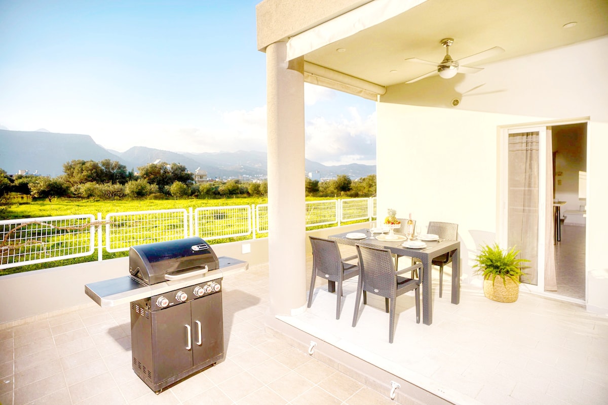 Nuestra villa está en una zona muy tranquila, a pocos kilómetros (10 minutos) fuera de la ciudad de Heraclión. Disfruta del sol, la naturaleza, nuestros hermosos jardines y la piscina privada. Estacionamiento gratuito, cocina totalmente equipada y baño . Ideal para familias con niños. Puede alojar hasta 4 personas con 1 dormitorio y una sala de estar.