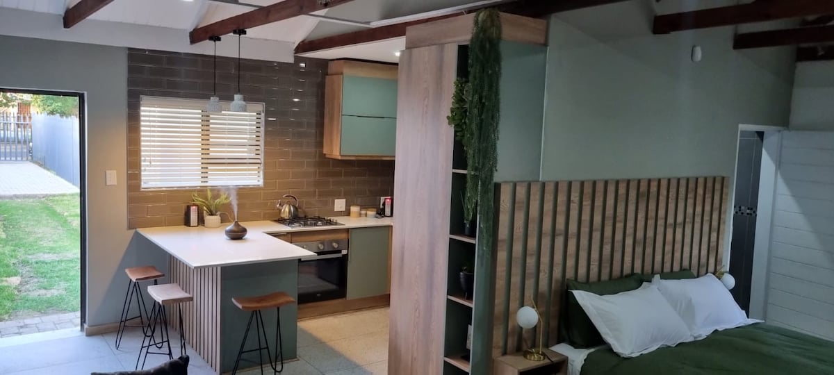 Bienvenido a su refugio privado a solo 2 km del centro comercial Secunda, con la tranquila Greenstrip justo fuera de su puerta, ¡perfecta para paseos matutinos! Este espacio está separado de la casa principal y tiene un garaje designado, lo que permite la paz y la privacidad. Los huéspedes pueden relajarse en el tranquilo jardín del patio y pueden organizar el acceso a una piscina cubierta con antelación. Ideal para huéspedes que están fuera por negocios y quieren un lugar acogedor para dormir.