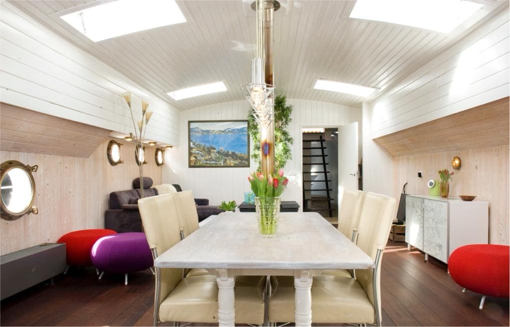 La casa flotante es un lugar espacioso y cómodo en un canal tranquilo. Es una experiencia romántica, incluso los patos vendrán a saludar. Dos dormitorios, un baño y una bonita sala de estar abierta para disfrutar. Está decorado en un estilo moderno y colores tranquilos. La cocina tiene todos los electrodomésticos y un lavavajillas. En el salón hay un cómodo sofá y TV por cable.