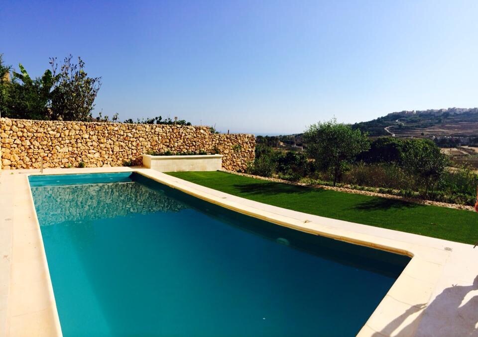 Villa bellamente reformada con aire acondicionado, que consta de 6 dormitorios en suite: 2 dormitorios en la planta baja y cuatro a nivel de la piscina, junto con una cocina/comedor/sala de estar y un baño principal. La piscina con forma de riñón con jacuzzi tiene vistas al pintoresco paisaje del valle de Pergla que conduce hasta la tranquila bahía de Ghajn Barrani. La piscina y la zona de la cubierta están rodeados de jardines mediterráneos maduros con olivos.
