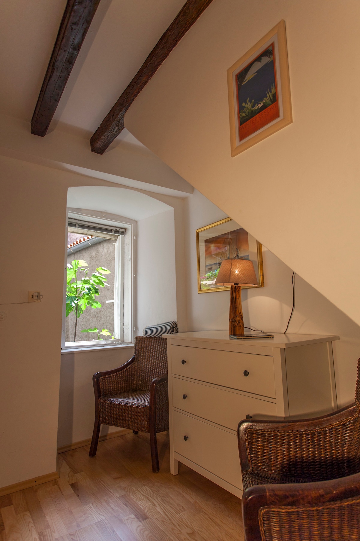 Este es un apartamento romántico y luminoso ubicado en el centro de la ciudad de Cres. El edificio en sí tiene 500 años, está hecho de piedra y madera, pero el apartamento acaba de ser reformado con mucha clase. El apartamento está en el segundo piso y consta de dos habitaciones, una cocina bien equipada con zona de comedor y un dormitorio con cama tamaño king y baño moderno en la habitación. Hay otros dos apartamentos en el edificio, uno de ellos es mi casa, así que estaré a tu disposición si es necesario.