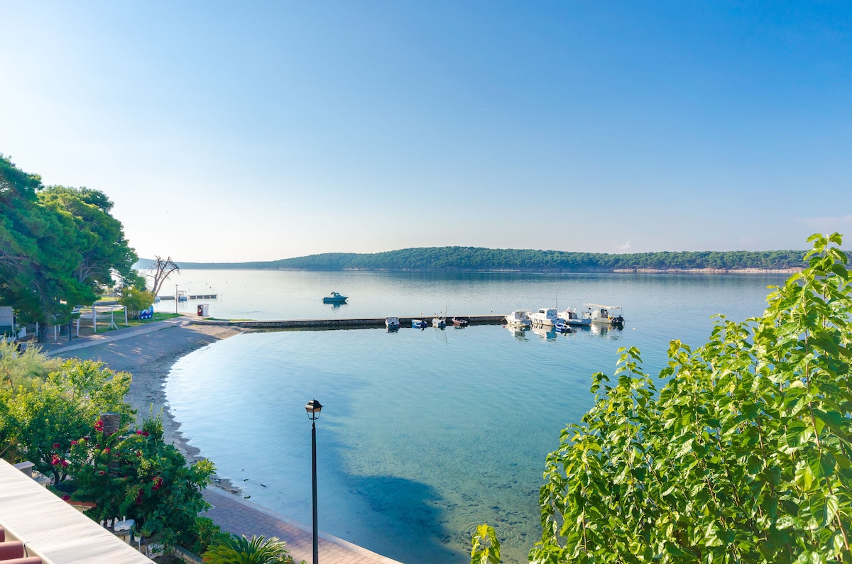 El apartamento está en el primer piso de una casa familiar en Barbat y tiene su propia entrada independiente. Hay una gran terraza y un balcón con vistas al mar y a las islas cercanas. Ofrecemos una plaza de aparcamiento para tu coche, motocicleta o bicicleta. Todo el apartamento está climatizado y cubierto con conexión wifi gratuita. La cocina está totalmente equipada con electrodomésticos de cocina (nevera, estufa, horno, cafetera) y vajilla. Se admiten mascotas pequeñas sin cargo adicional.