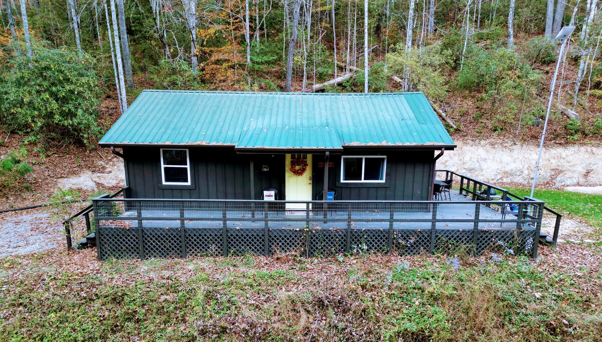 Cabaña aislada en las montañas ubicada en el centro de muchas actividades y atracciones en el lado sur del Smoky Mountain Nat'l Park junto a un arroyo. Muy privado; dos dormitorios, un baño completo y cocina completa con electrodomésticos de acero inoxidable. Amplia y hermosa chimenea de gas con control remoto/ mini split para calefacción y aire. Amplia zona exterior de terraza de varios niveles con jacuzzi para 4 personas, parrilla de propano y zona de fogón.