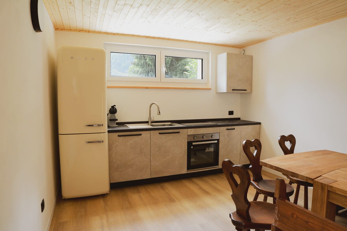 "La Casa dell 'Arco" toma su nombre del arco de entrada, un elemento típico de la arquitectura de Frassinetto, que caracteriza a esta casa histórica. Su núcleo más antiguo probablemente data del siglo XIII al XIV. La unidad se compone de tres habitaciones con atención a los detalles para redescubrir el cálido ambiente de las casas alpinas. La sala de estar con sofá/cama y chimenea precede a la cocina y para completar una hermosa habitación con ducha y un baño cómodo y equipado.