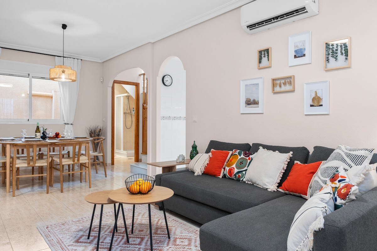 Hermosa casa de vacaciones en Gran Alacant con piscina privada. Para un máximo de 6 personas. 3 dormitorios, 2 baños y plaza de aparcamiento privado para tu coche. A solo 8 minutos en coche del aeropuerto de Alicante. A 3 minutos en coche de la playa. A 20 min a pie. Los supermercados están muy cerca (15 min caminando) Te recomendamos alquilar un coche.