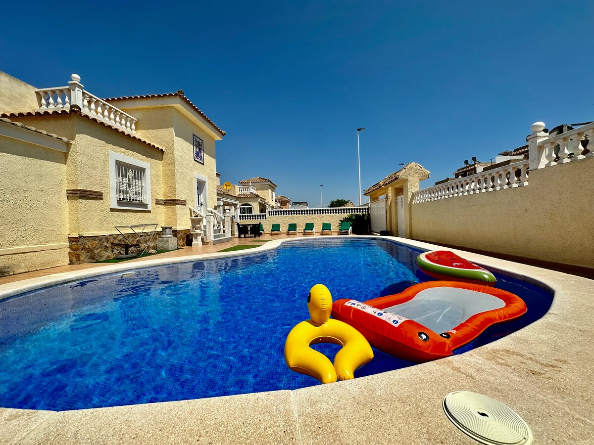 We are renting out our home while we are traveling - perfect for families with small children/babies and a pet; a lovely garden, private pool and a large bbq area for lazy, relaxing days. This is not your typically equipped holiday rental - but a true home away from home. The house has 3 bedr. (with AC’s) and 2 baths. Villa Lindal is close to Rojales AquaPrk, La Maquesa Golf and Ciudad Quesada (walking distance). The beaches of Guardamar del Segura and La Mata, a short drive away