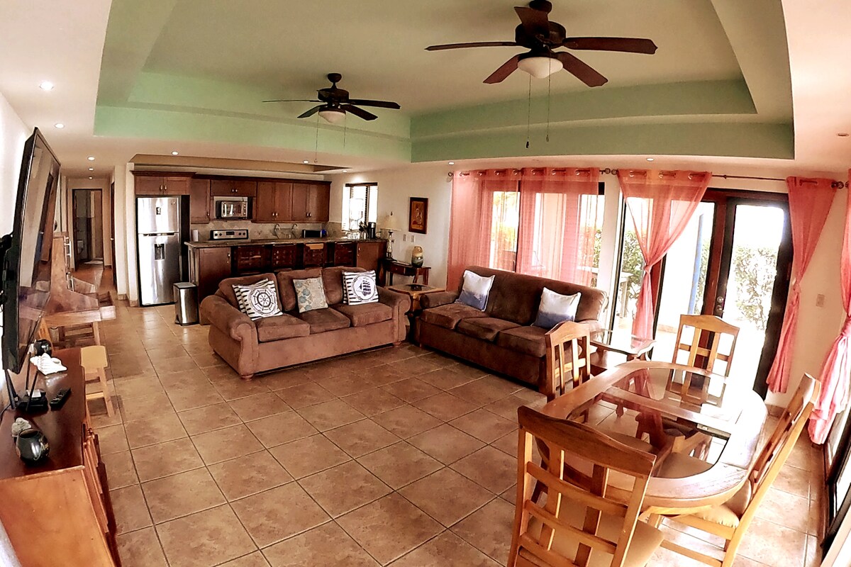 Descubre nuestro acogedor condominio de una habitación en Gran Pacifica; Este es el más cercano al restaurante y la piscina, brindándote fácil acceso a todas las comodidades, un lugar perfecto para parejas y familias de hasta 4 people. En un entorno pacífico y relajante. Disfruta de la vista frontal al mar desde la sala o el porche, relájate en una cómoda cama King y cocineta completamente equipada, A/C central, TV full HD con acceso a YouTube y Netflix. ¡Bienvenido al paraíso junto al mar!
