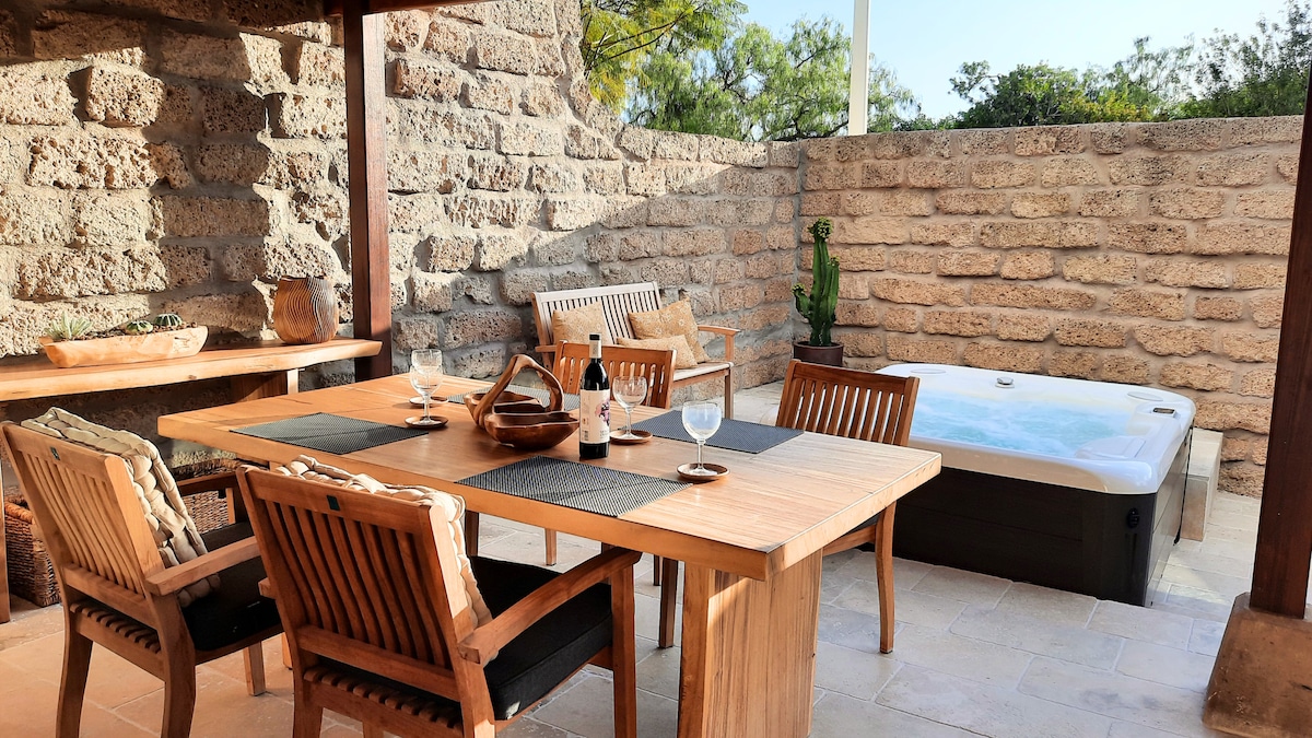 Helles freundliches Häuschen mitten im Grünen mit eigenem Stil. In dem neu renovierten Appartement haben Sie Platz zum Entspannen, zum Kochen und Essen und zum Arbeiten im Homeoffice. Genießen Sie den Sonnenuntergang auf der gemütlichen Terrasse mit Couch. Vom Doppelbett aus sehen und hören Sie das Meer. Der längste und schönste Naturstrand Teneriffas liegt direkt vor der Haustür- 5 Gehminuten zum Wasser. Außerdem haben Sie nur 8 Gehminuten zum Tejita Center mit Restaurants und Supermarkt.