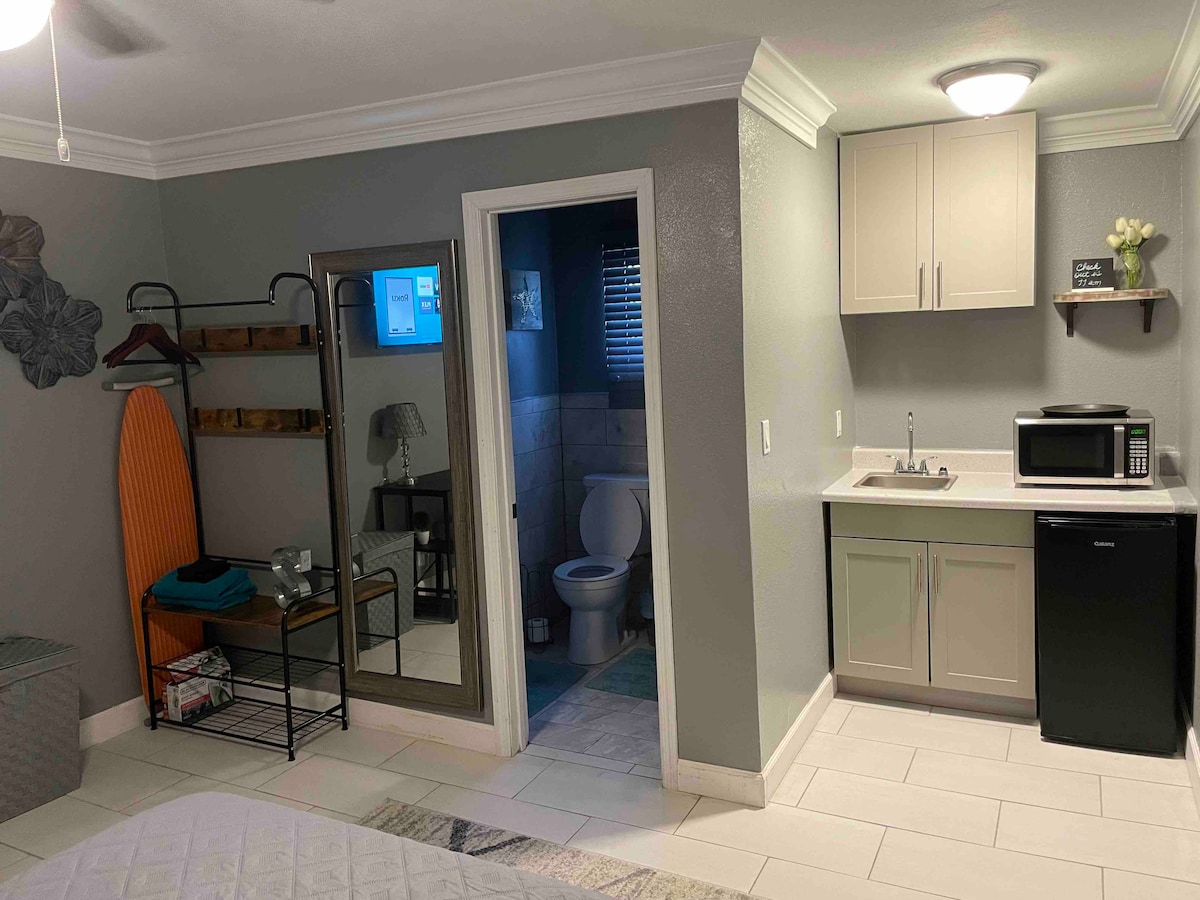 Cozy getaway in a quiet neighborhood. Private entrance with pool, minutes away from the beach. 2 bedroom suite with full kitchen and laundry room, microwave, Smart TV and air condition. Free Wi-Fi, Free parking. Gated property. We take the health and safety of guests seriously. Between each stay, the apartment is thoroughly cleaned and sanitized and surfaces, handles, knobs, etc. are wiped with cleaning solutions that follow health guidelines.