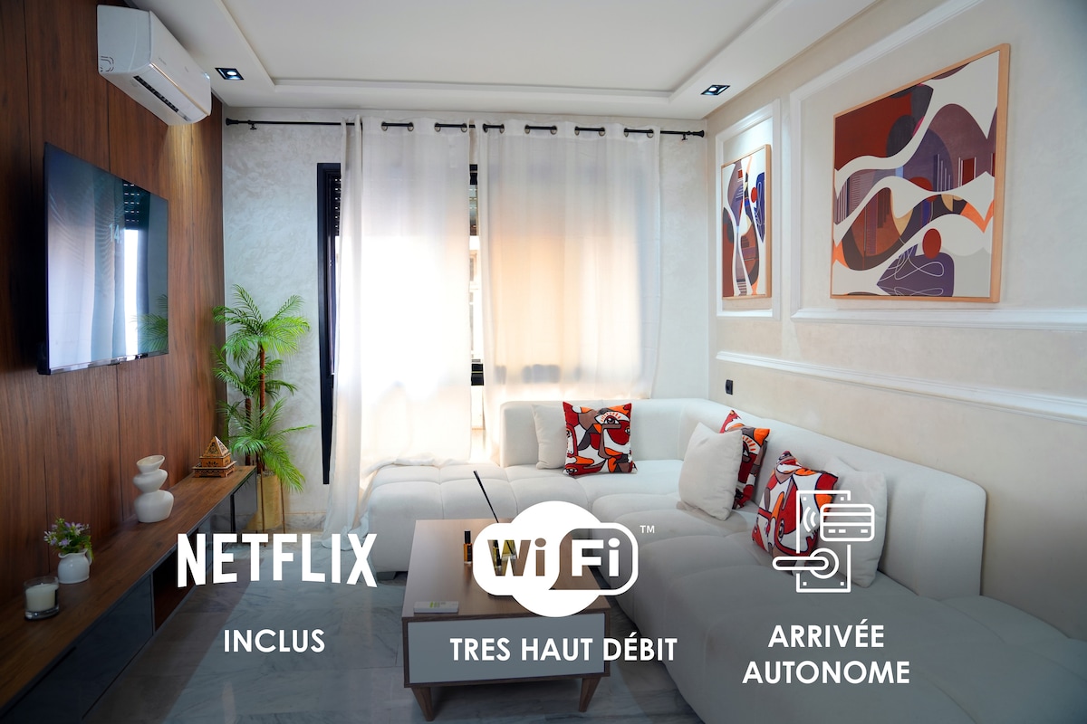 Bienvenido a este encantador apartamento en Aïn Diab Casablanca, a dos pasos de la playa y de los lugares más emblemáticos de la ciudad. Ideal para una estancia entre relajación, descubrimientos y comodidad absoluta 🌅 🚶 A pie: - Playa Aïn Diab y Corniche: 2 min. -Cafés, restaurantes, AnfaPlace: 5-10 min - Tranvía: 8 min - Centro comercial AnfaPlace: 2 min 🚗 En automóvil: - Mezquita Hassan II: 10 min - Morocco Mall: 10 min - Parque de la Liga Árabe y Twin Center: 10-12 min 🛎 ¡Reserve ahora para una estancia de mar y confort!