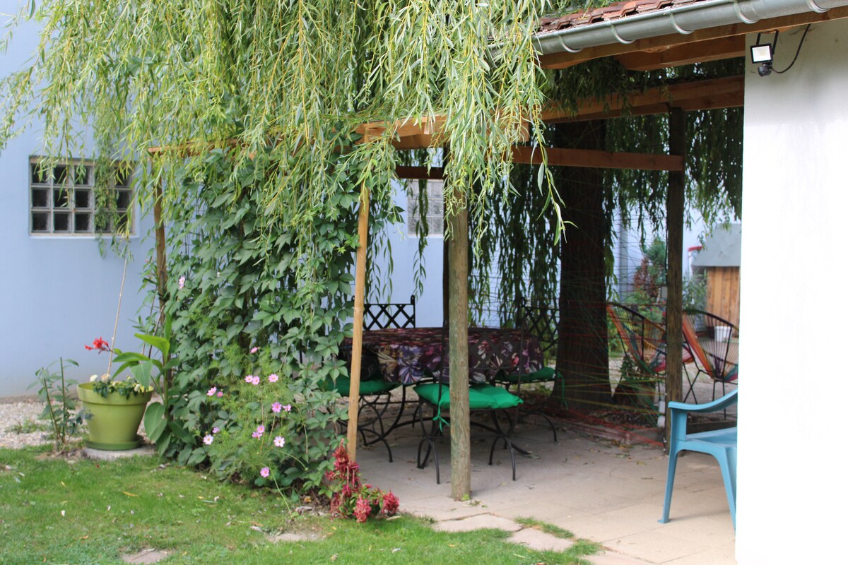 Casa rural con capacidad para 4 personas tranquilas. NUEVO equipado con aire acondicionado para pasar noches tranquilas cuando hace calor.... Venga a descubrir Alsacia y pase un buen rato en nuestra casa...bajo el sauce llorón o bajo los plátanos simplemente escuche el canto de los pájaros y descanse... La entrada de la vivienda es de planta baja que consta de cocina y pequeña sala de estar e inodoro.... arriba dos habitaciones y un baño con inodoro la lavadora está en el garaje si es necesario....