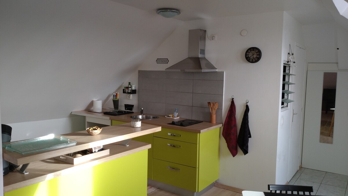 Muy espacioso pero igualmente íntimo y flotante porque está situado en el último nivel de la casa, con vistas a la vegetación, se sentirá totalmente aparte en este loft totalmente hecho de madera, bajo los tejados, lejos de las agitaciones sin omitir la conexión con el mundo moderno a través del Wifi. Con una terraza junto a una cocina equipada, que sirve de acceso discreto y personal a través de un caracol, c es con total autonomía que disfrutará en plena ausencia de paso de nadie